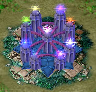 Nearby towers gain different stat boosts based on their respective elements. -